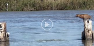 Wild Bobcat Makes This Huge Leap Over The River Seem Effortless