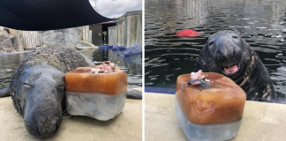 Seal Gets Surprised With A Giant Ice Fish Cake On His...