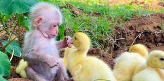 Adorable Baby Monkey Caring For Baby Ducks Like They’re His Family