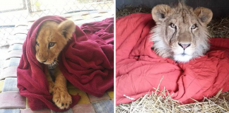 Rescued Baby Lion Can’t Sleep Without A Blanket Even Though He’s...