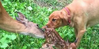 Mama Deer Brings Her Babies To Meet The Golden Retriever She...