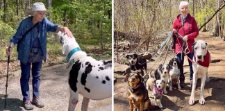 Great Dane Decides The Elderly Woman He Meets On A Hike...