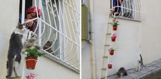 Woman Built A “Cat Ladder” For Stray Cats To Come Inside...