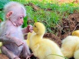 Adorable Baby Monkey Caring For Baby Ducks Like They’re His Family