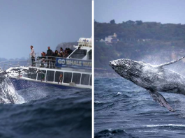 Giant Humpback Whale Breached Out Of The Ocean Infront Of Whale Watchers
