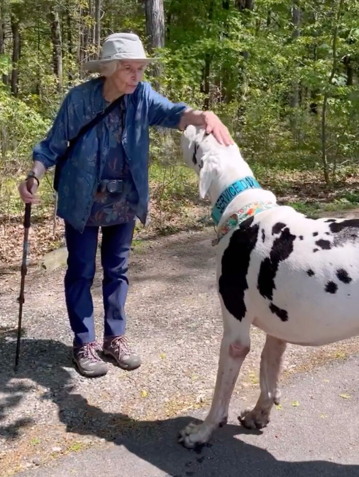 Kernel the Great Dane’s owner, Alyssa Berkovitz, also started a local programme for dogs to walk without leashes. While out for a stroll, her cheerful giant met some interesting new pals. An elderly couple were amused by Kernel’s size as they laughed at his antics on the peaceful hiking track, which sparked Berkovitz’s interest in the narrative. It didn’t take long for “New Grandma” and her late husband, Cal, to develop an immediate bond with the dog Kernel.