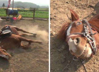 Dramatic Horse Named “Jingang” Pretends To Be Dead Whenever Someone Try...