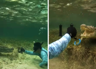 Diver Comes Face To Face With A Crocodile