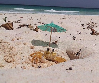 It just so happens that an image of a happy crab that seems to be in the spirit of the Christmas season, complete with a small umbrella, has gone viral.