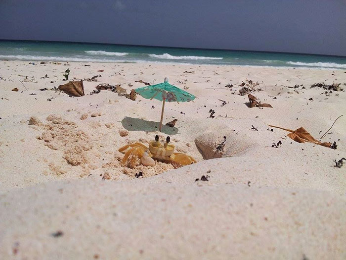 A lady who claims that she is the owner of the photograph adds, “My husband stretched out on the sand for twenty minutes, waiting for the crab to come out so that he could take the perfect photograph.” It was all well worth it.”