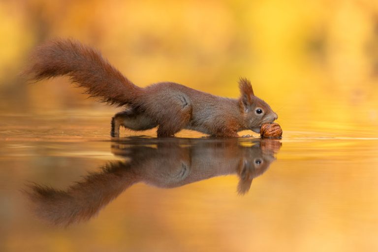 The stunning hues of autumn are the aspect of the season that I like the most. “I really like it when you’re able to photograph an animal with those colors in the background,” photographer Dick van Duijn said in an in-depth interview with the interviewers who reached out to him to gain some insights regarding his work. During the course of the discussion, he discussed his most recent stunning photographs, which depict squirrels playing in the water with nuts.
