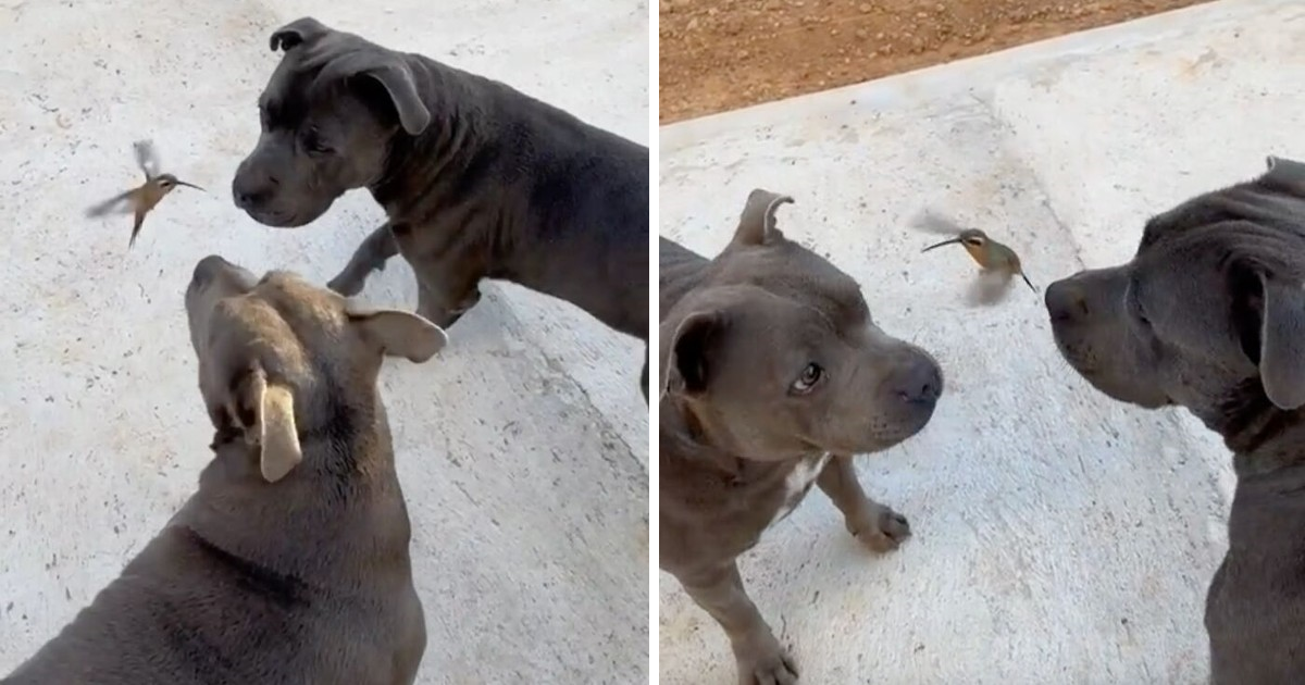 The touching relationship that two cute pit dogs, Nick and Boston, had with a wild hummingbird caused them to become online sensations overnight.