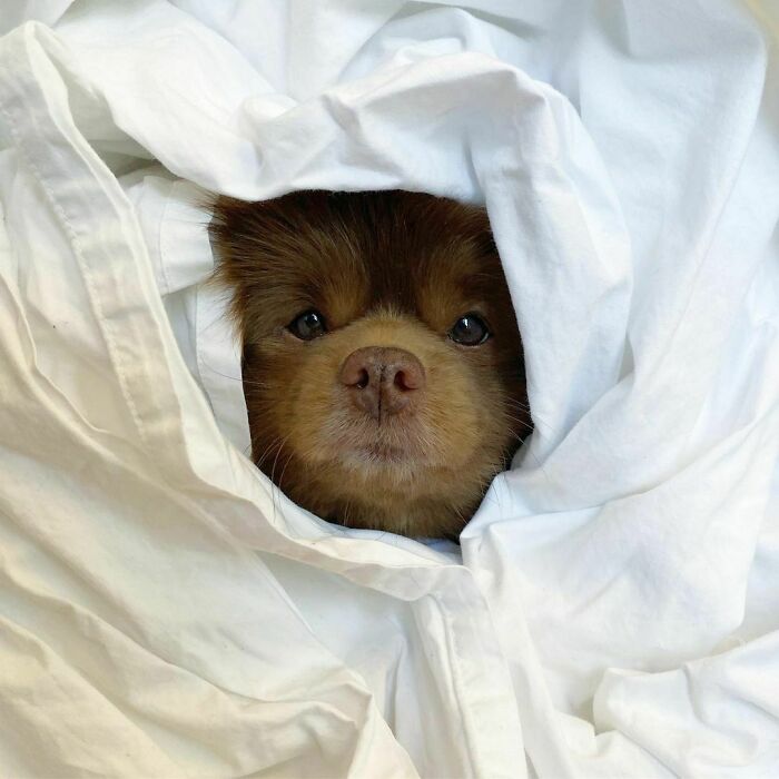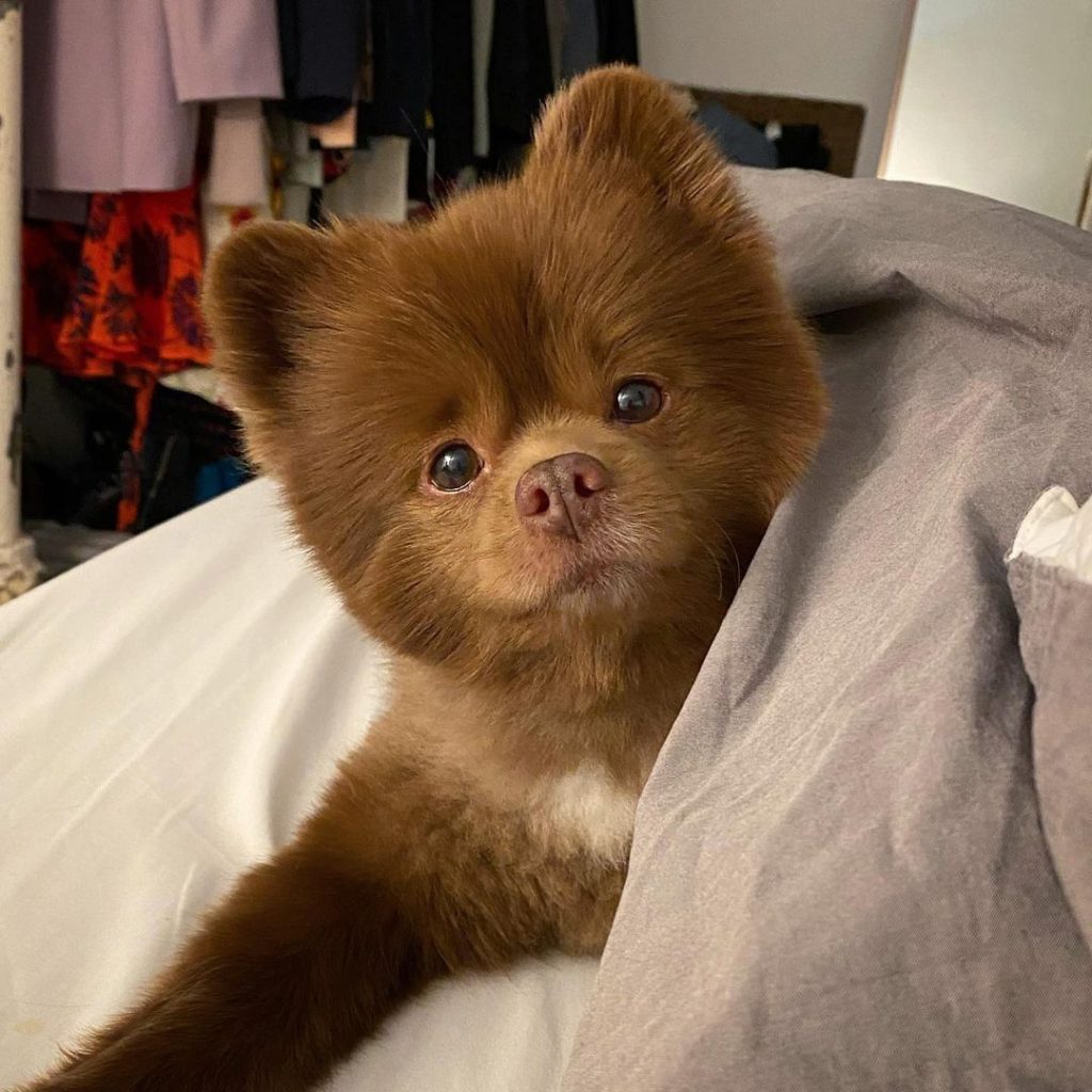 They are now both residing in New York City, and the gorgeous chocolate Pom who looks like a tiny bear couldn’t be happier. She adopted Bertie from a shelter in Oklahoma, and ever since then, they have been living together.